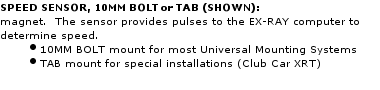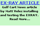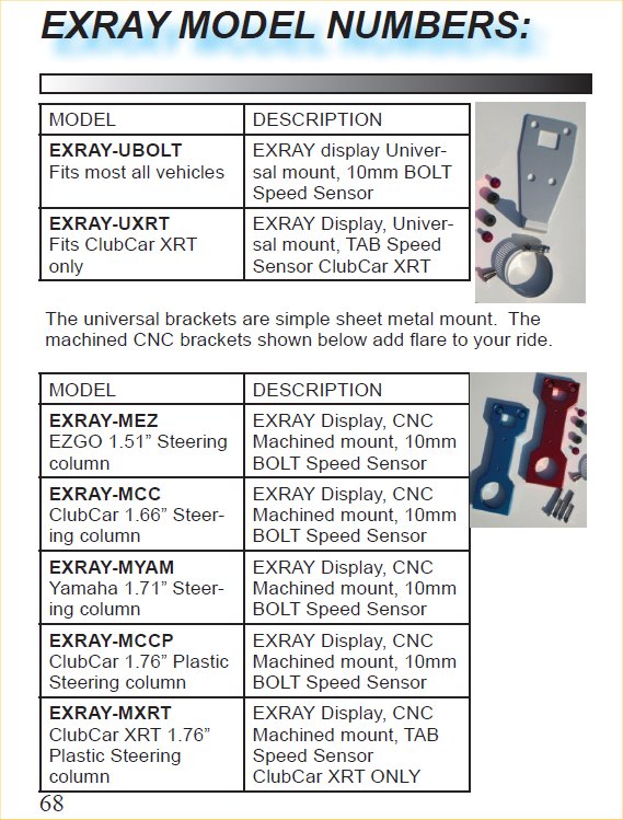 A SIMPLE to install Digital Speedometer System for steering column or dashboard mounted for golf carts, NEV, or other vehicles NOT previously equipped with speed measuring device. Some states in the USA now allow golf carts on the road, The EX-RAY (TM) may prevent that Expensive Speeding ticket! Contact your local Dealer today for more information and pricing! Send email to: info@edt-exray.com or sales@edt-exray.com > MADE IN THE USA < |