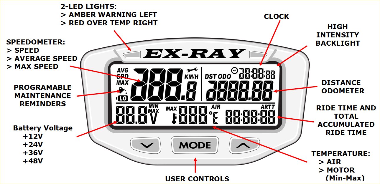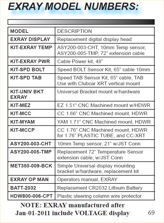 EX-RAY VOLT (GEN-2, Obsolete) Built after June 1st 2011 to June 2016 with Battery Pack Voltage Reading! > 12, 24, 36, and 48V batteries. |
