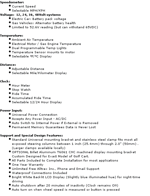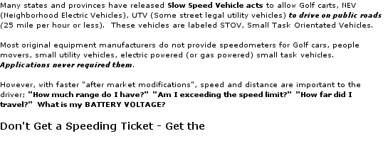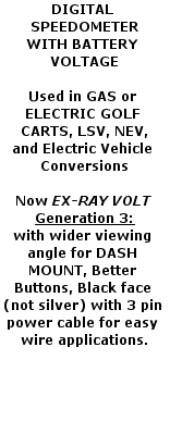 Digital Speedometer System for Golf Carts, Low Speed vehicles, NEV, Recreational, or Agricultural (Fish Farm) Equipment, gas or electric (12, 24, 36, and 48volt systems): |